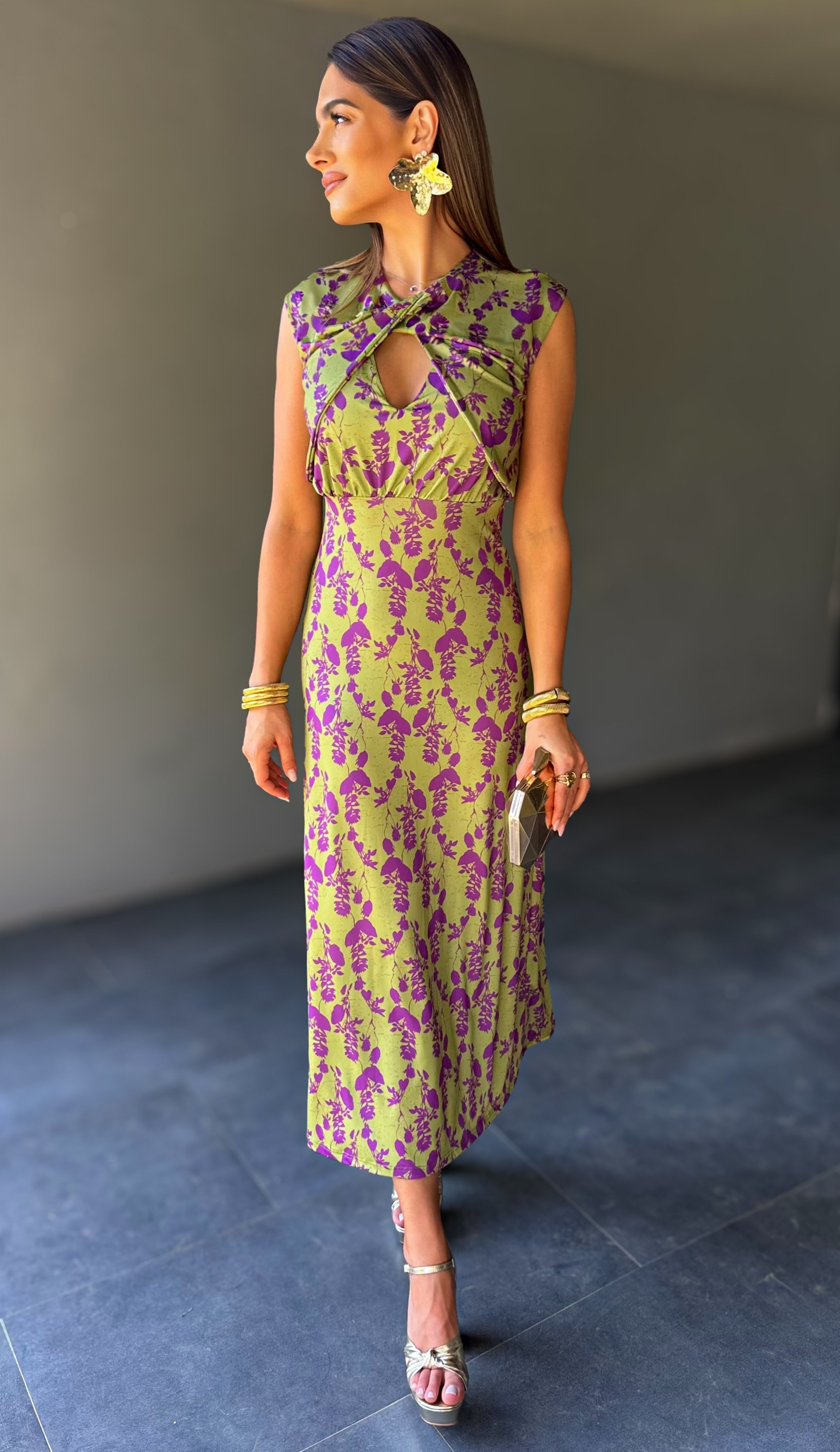 Miraya Olive Bloom Dress